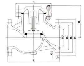 H41W不銹鋼升降式止回閥結構尺寸圖: