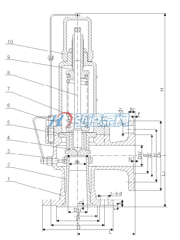 | 型號 | 公稱通徑 | do | D | K | g | g1 | b | f | f1 | Z-ød | DN' | D1 | K1 | g2 | b1 | f' | Z1-ød1 | L | L1 | ≈H |