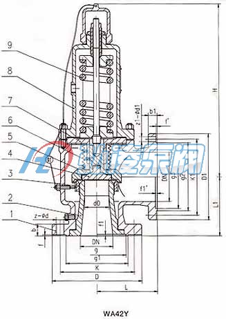 平衡式波紋管安全閥結(jié)構(gòu)尺寸圖: