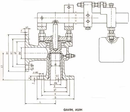 GA41H,A51H型單杠桿安全閥外形尺寸和連接尺寸: