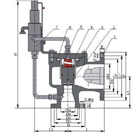 A46F先導式安全閥外形尺寸和連接尺寸: