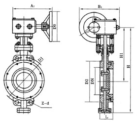 手柄對夾式硬密封蝶閥主要外形連接尺寸