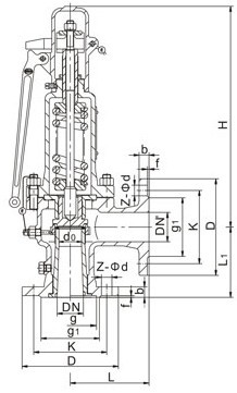 A27H微啟式彈簧安全閥外形尺寸和連接尺寸:
