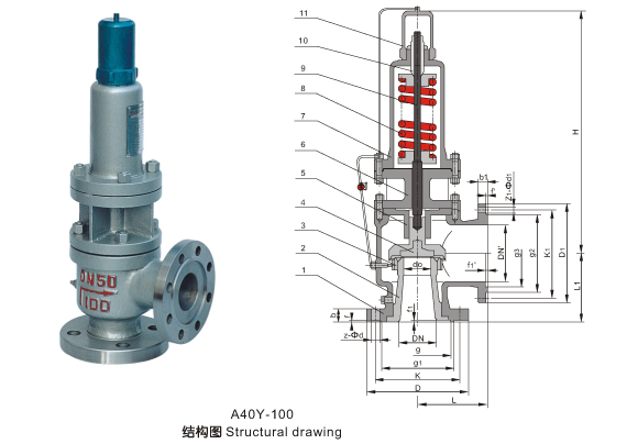 A40Y-C適用于工作溫度≤400℃、YA40Y-1≤450℃的空氣、水、氮氫混合氣等介質(zhì)的設(shè)備或管路上,YA40Y-P適用于工作溫度≤300℃有腐蝕性介質(zhì)的設(shè)備或管路上,作為超壓保護裝置。